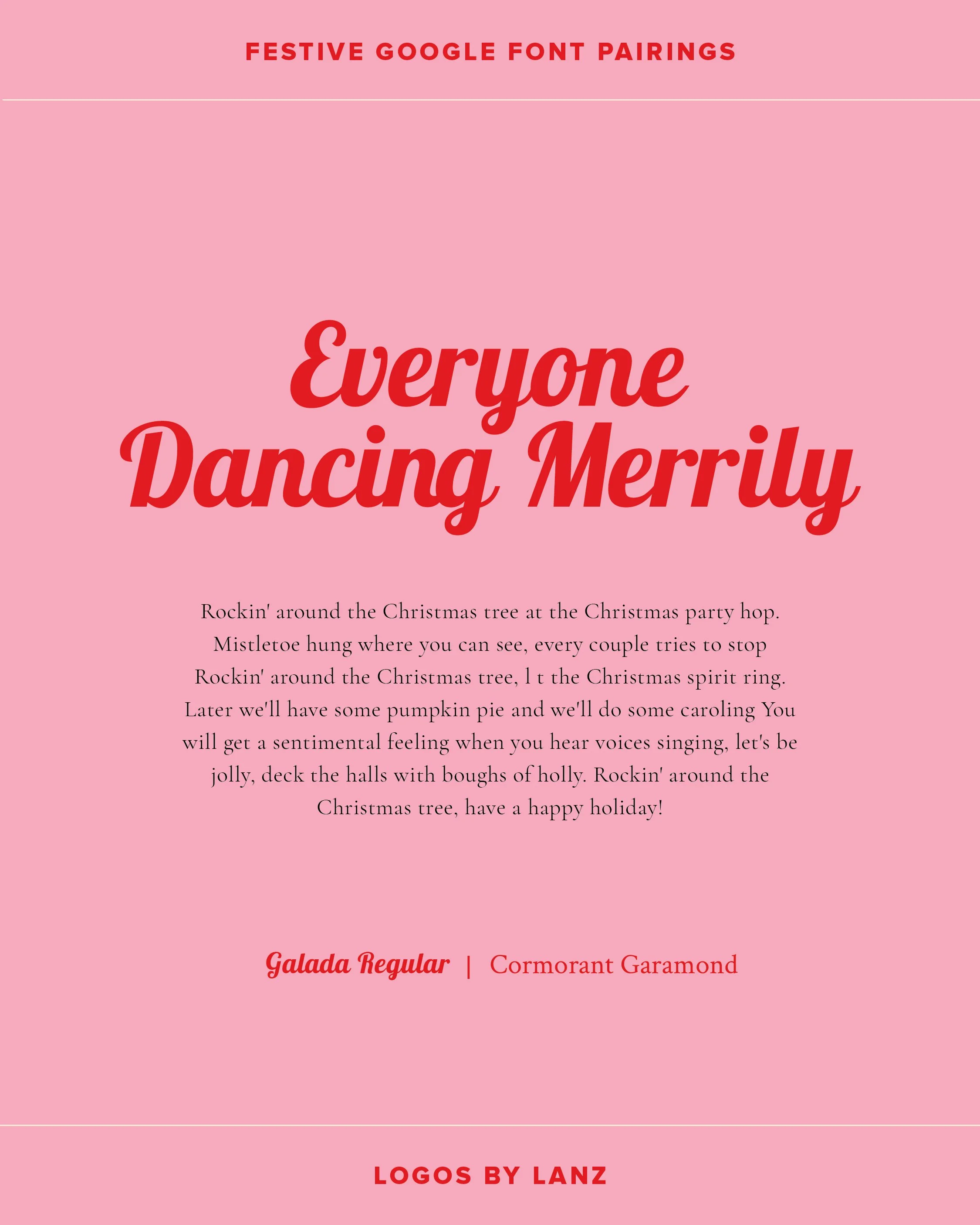 This one is a little bit out there! Galada is most certainly a spirited font, that’s sure to catch attention. I really love its retro vibe; and its slightly italicised style gives it a sense of energy and fun! A more sophisticated body copy of Cormorant Garamond helps to ground the energetic headline font, creating a really bold and unique Christmas font pair.